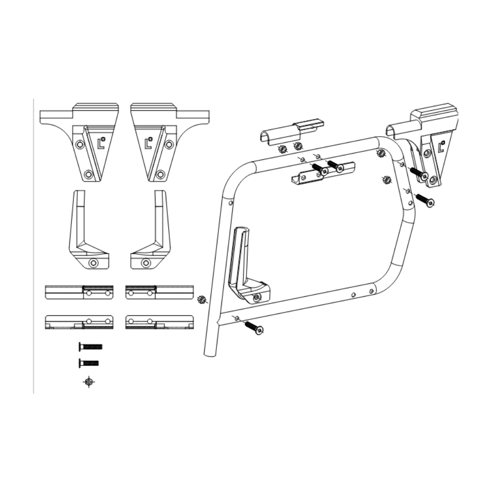 ll kit adattatore SH4P consente di fissare e montare valigie laterali Shad compatibili con il sistema 4P ai telai laterali Lartech-moto.